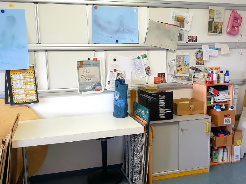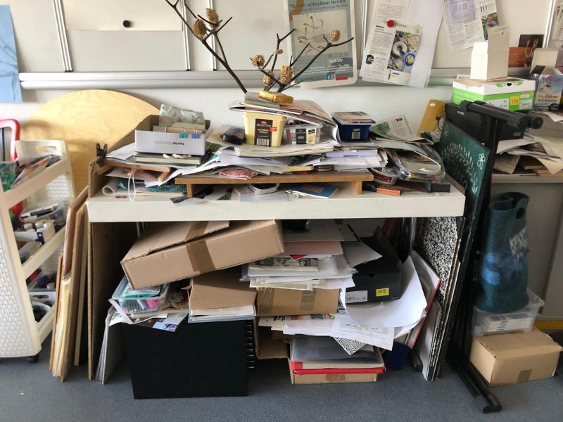 Beate ist eine echte Künstlerin. Sie kann alles brauchen! Doch über die Jahre wuchs ihr der Zustand in ihrer Kunstschule über den Kopf. In unserem Erstgespräch verglich sie die Unordnung mit „Efeu, das immer mehr Besitz von mir ergreift“.